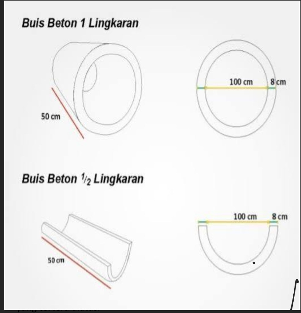 Harga Buis beton setengah lingkaran ( 1/2 ) adalah 2/3 dari harga yang tertera diatas.