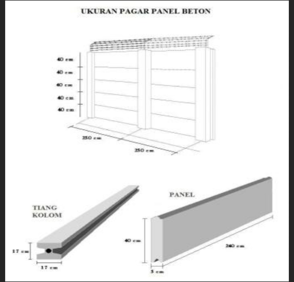 (6 Lembar Panel, Tinggi Kolom 3.2 M, Panel 2.4 m, Cor Pondasi Ukuran